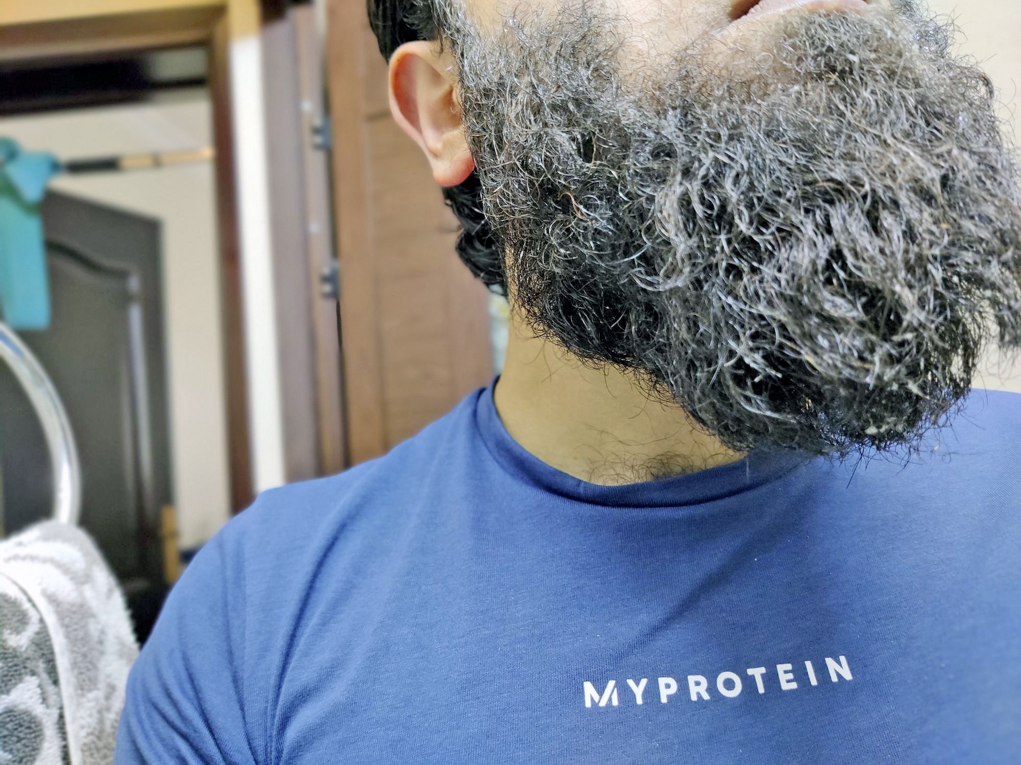 Use your towel to dry the full beard and the skin underneath. Then use a hairdryer and a comb.