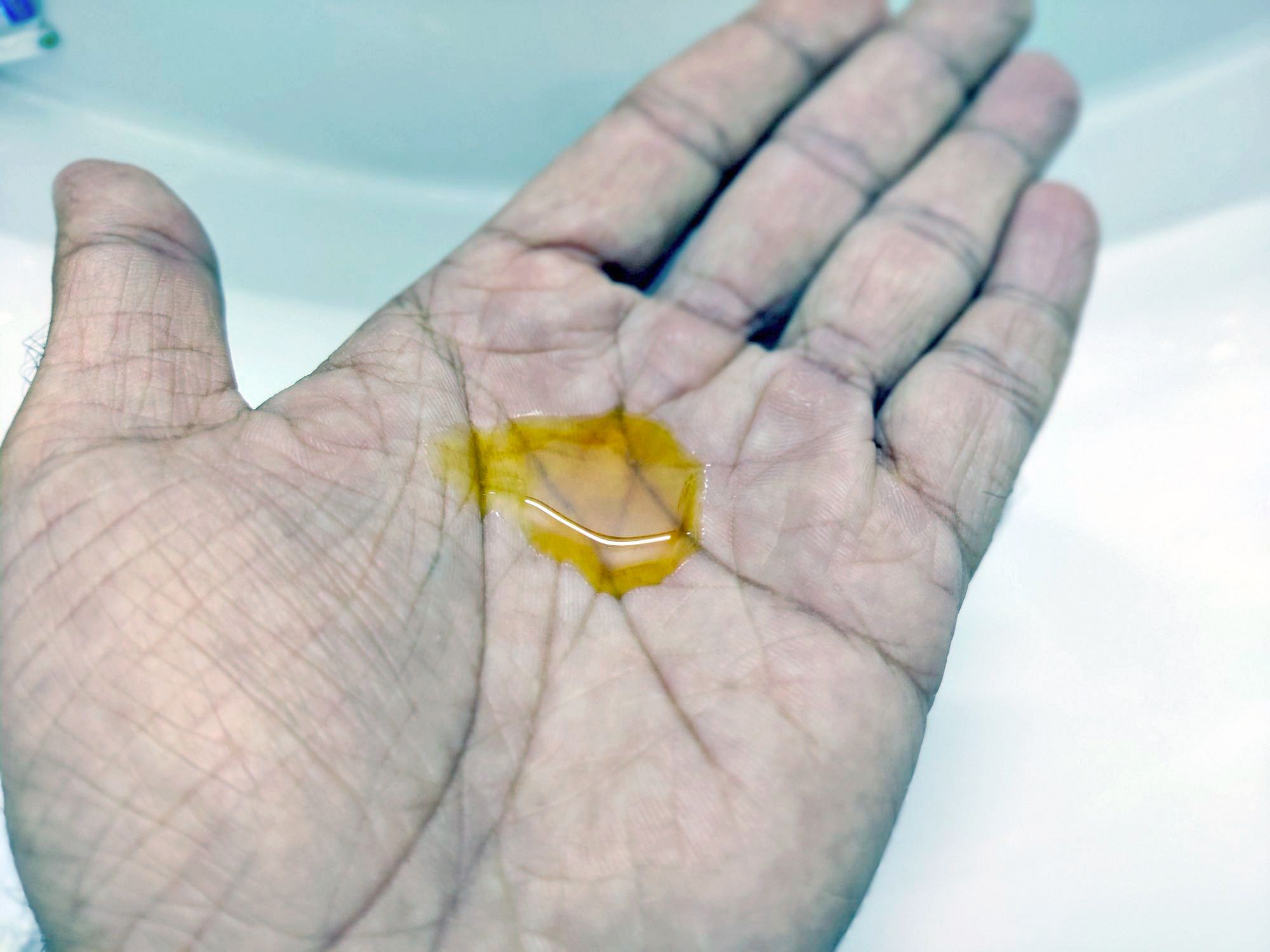 You need about a 50p coin / 2 AED Dirham coin size in your hand like in the picture below.